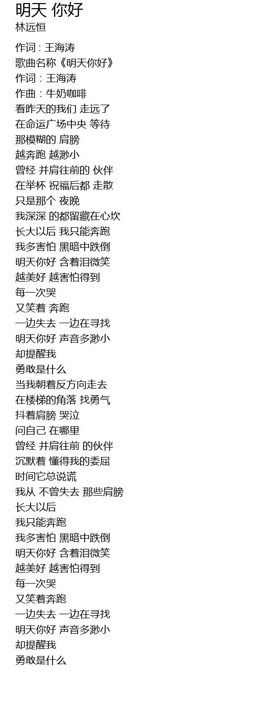 | gē qǔ míng chēng míng tiān nǐ hǎo | |