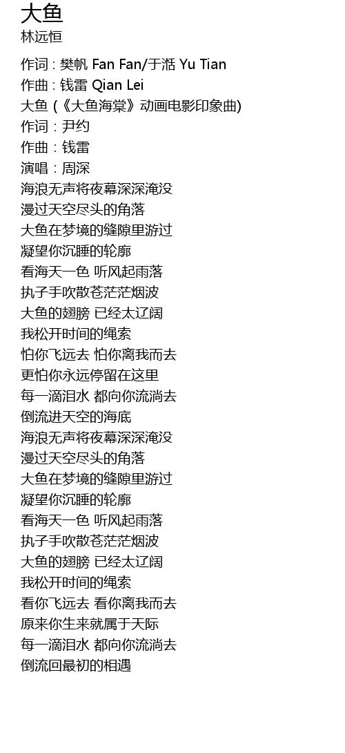| 大鱼 (《大鱼海棠》动画电影印象曲) | |
