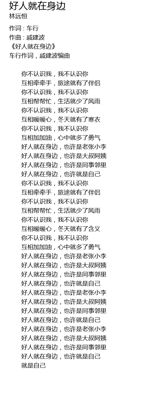 | hǎo rén jiù zài shēn biān, yě xǔ shì lǎo zhāng xiǎo lǐ | |