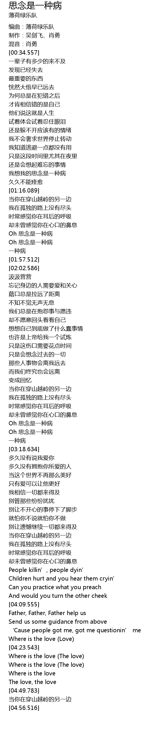 | [01:35.918] | Oh sī niàn shì yī zhǒng bìng |
