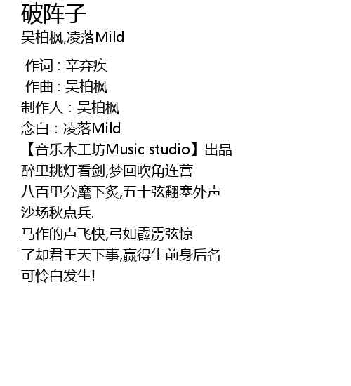 | [00:22.975] | 醉里挑灯看剑,梦回吹角连营 |