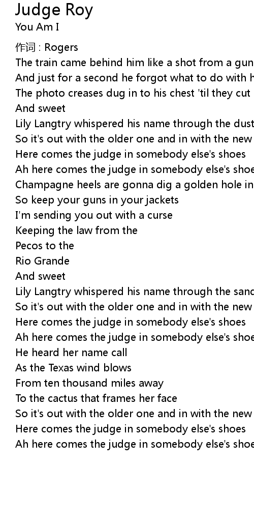 | Ah here comes the judge in somebody else' s shoes |