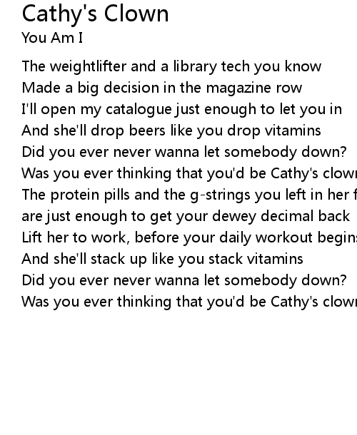 | Was you ever thinking that you'd be Cathy's clown now she's around | |