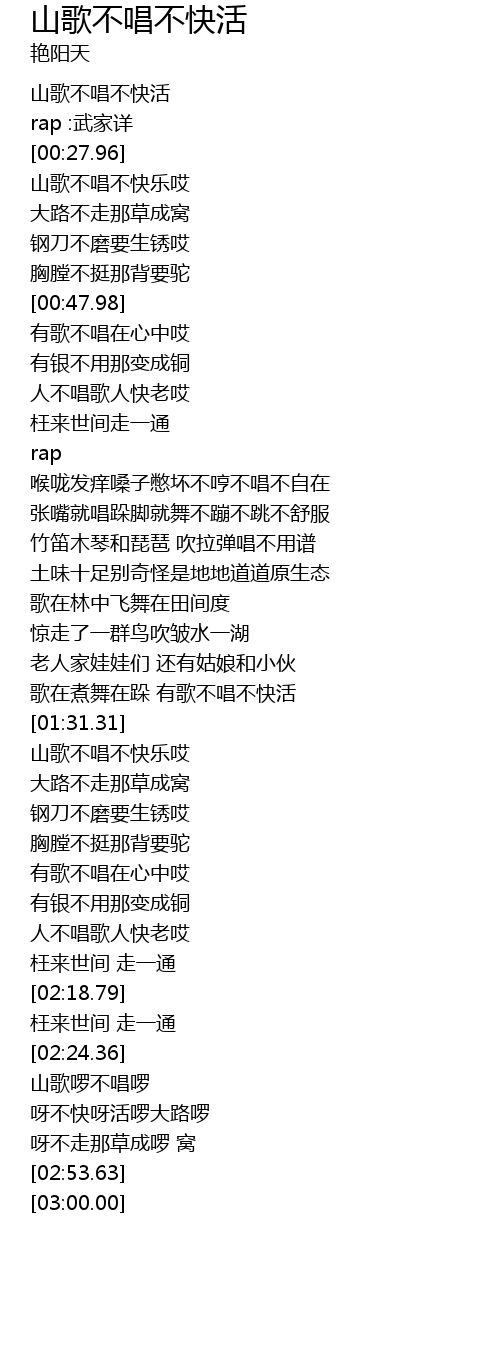 | [00:00.00] | 山歌不唱不快活 |