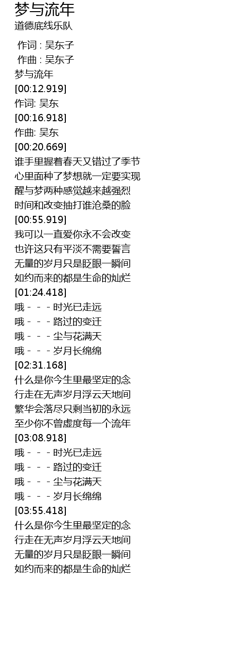 | [03:02.418] | 至少你不曾虚度每一个流年 |