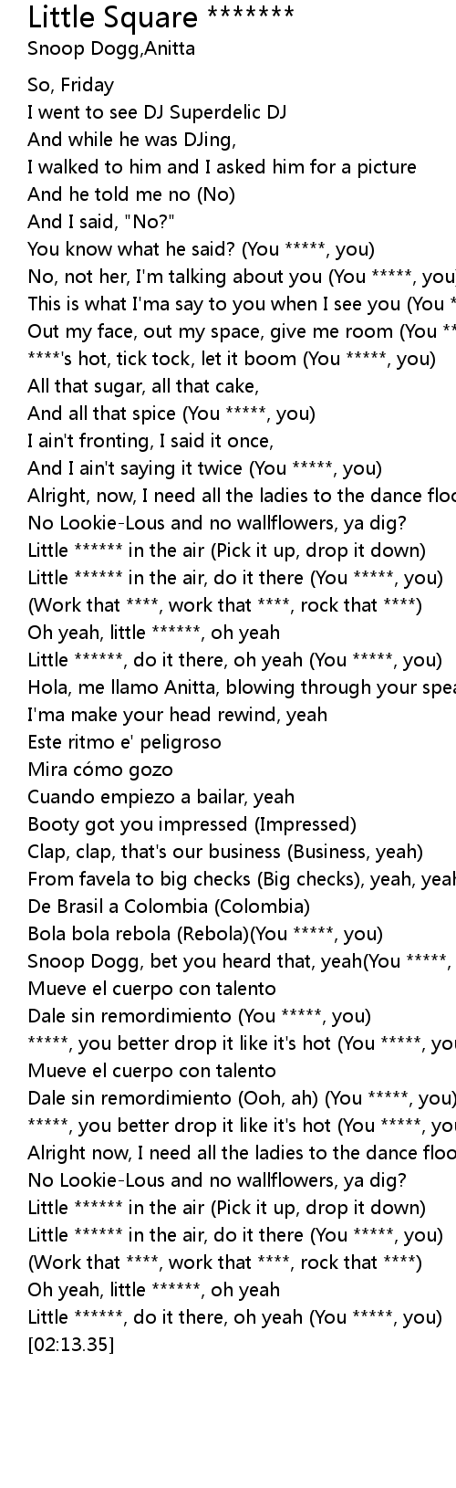 | [01:46.99] | *****, you better drop it like it's hot (You *****, you) |