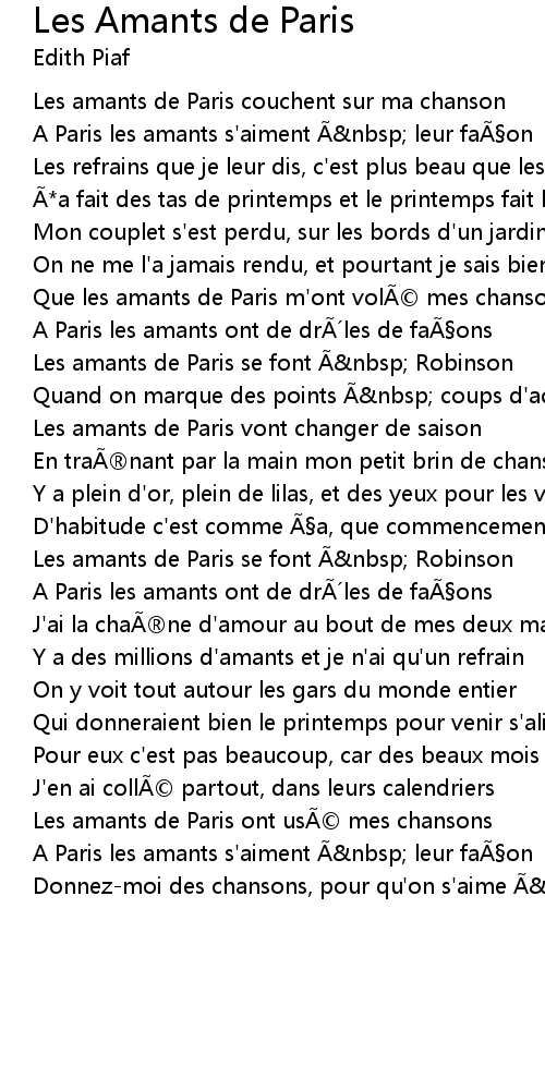 | Donnez-moi des chansons, pour qu'on s'aime à Paris |