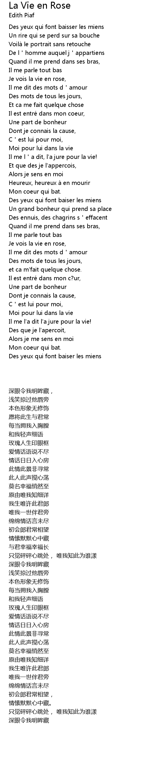 | [00:33.070] | Je vois la vie en rose, |