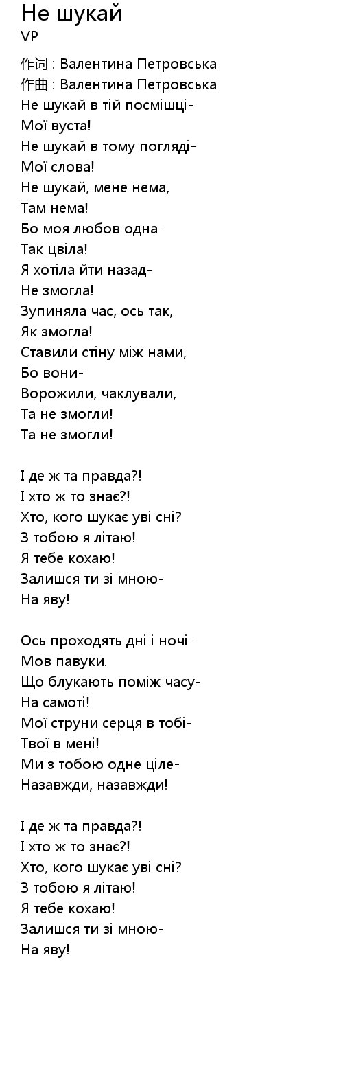 作词 : Валентина Петровська |