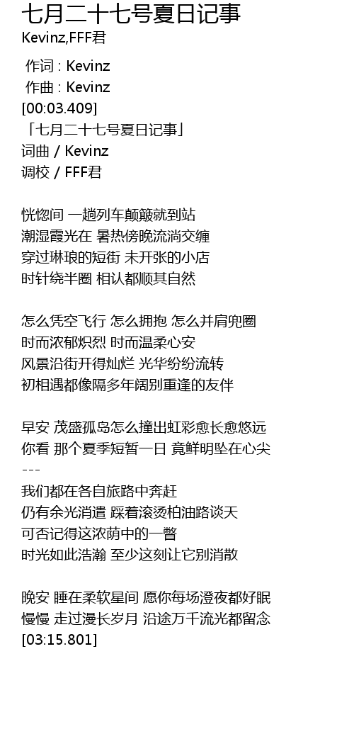 | [00:17.123] | 「七月二十七号夏日记事」 |