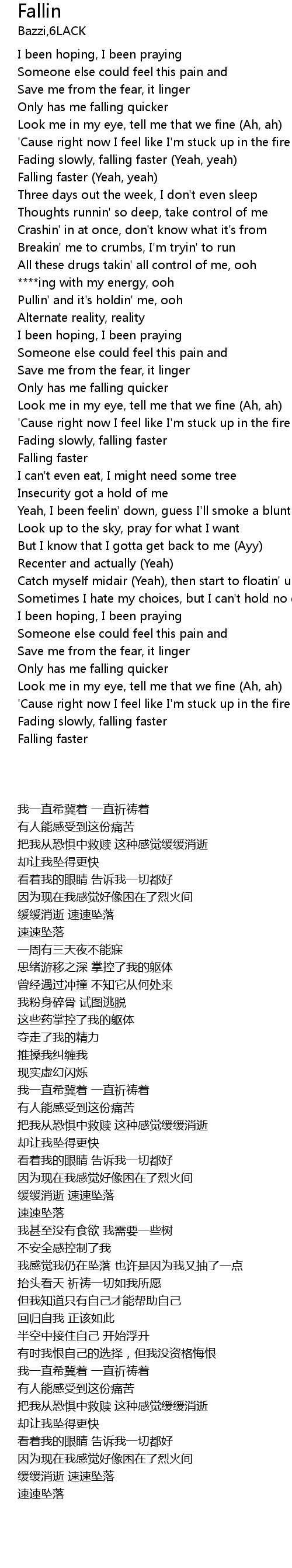 | [00:27.44] | Fading slowly, falling faster (Yeah, yeah) |