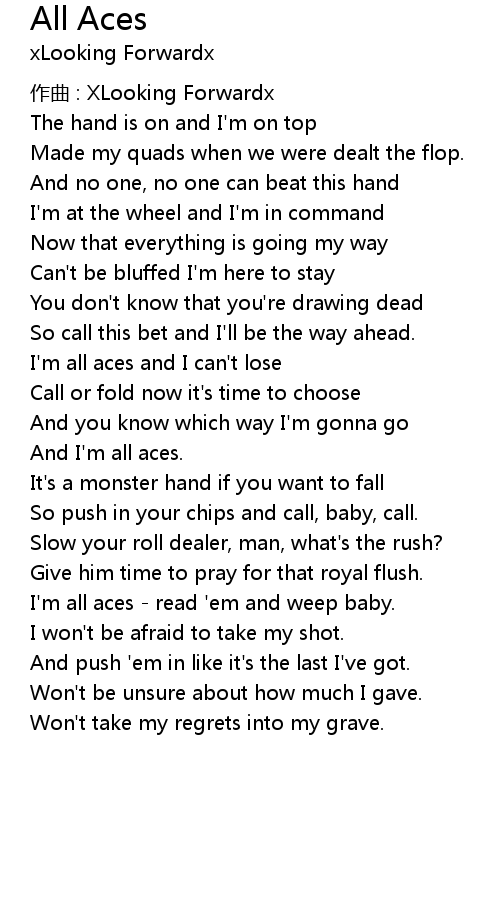| I'm all aces and I can't lose | |