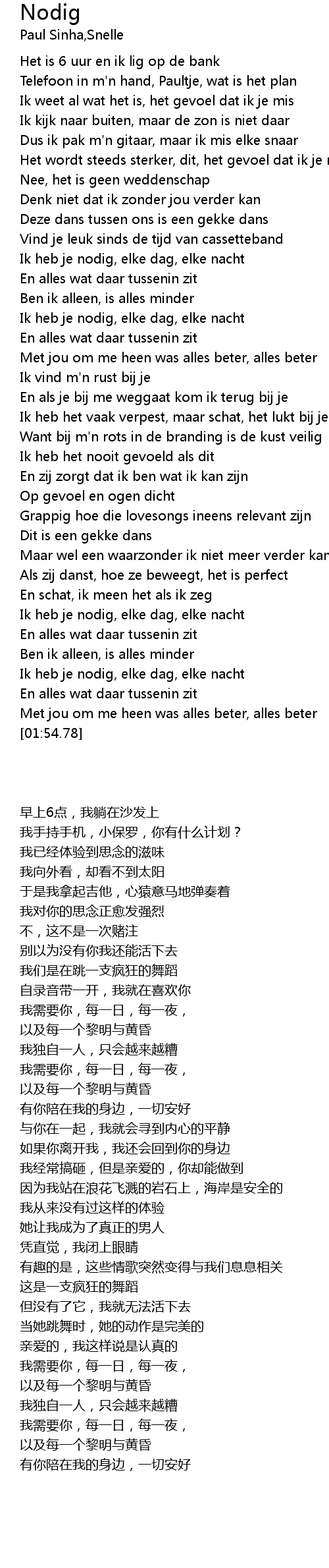 | [01:35.28] | Ik heb je nodig, elke dag, elke nacht |
