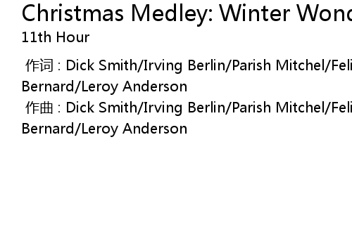 | [00:00.00-1] | 作词 : Dick Smith/Irving Berlin/Parish Mitchel/Felix Bernard/Leroy Anderson |