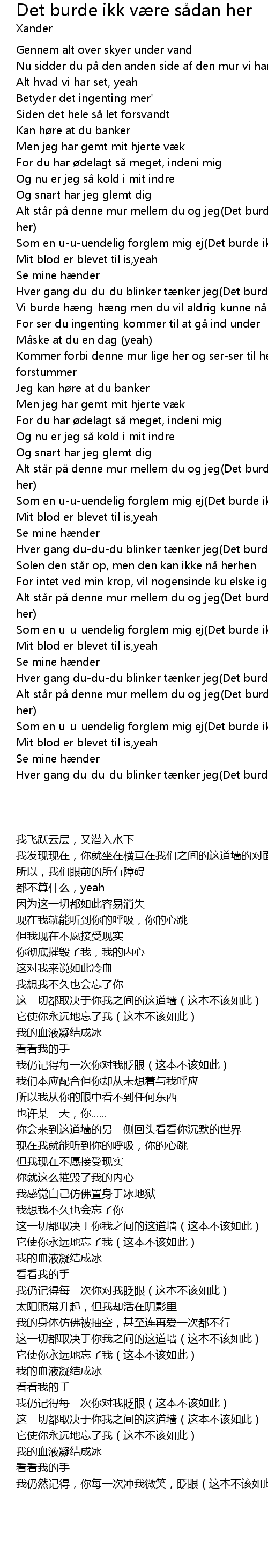 | [2:43:15] | Alt st r p denne mur mellem du og jeg Det burde ikk v re s dan her |
