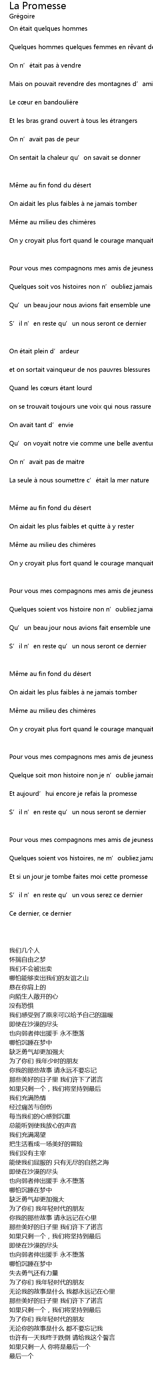 | Et aujourd’hui encore je refais la promesse | |