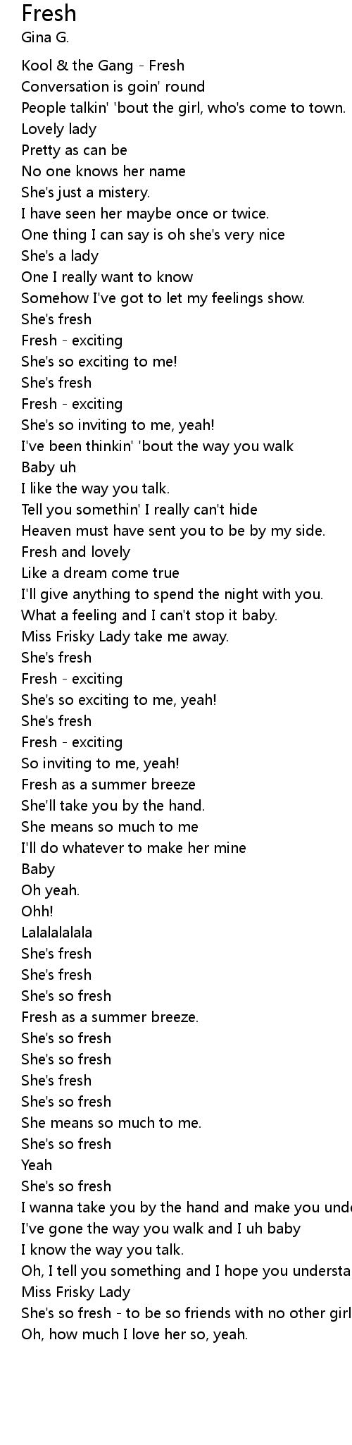 | [03:18.69] | She's so fresh - to be so friends with no other girl than lady. |