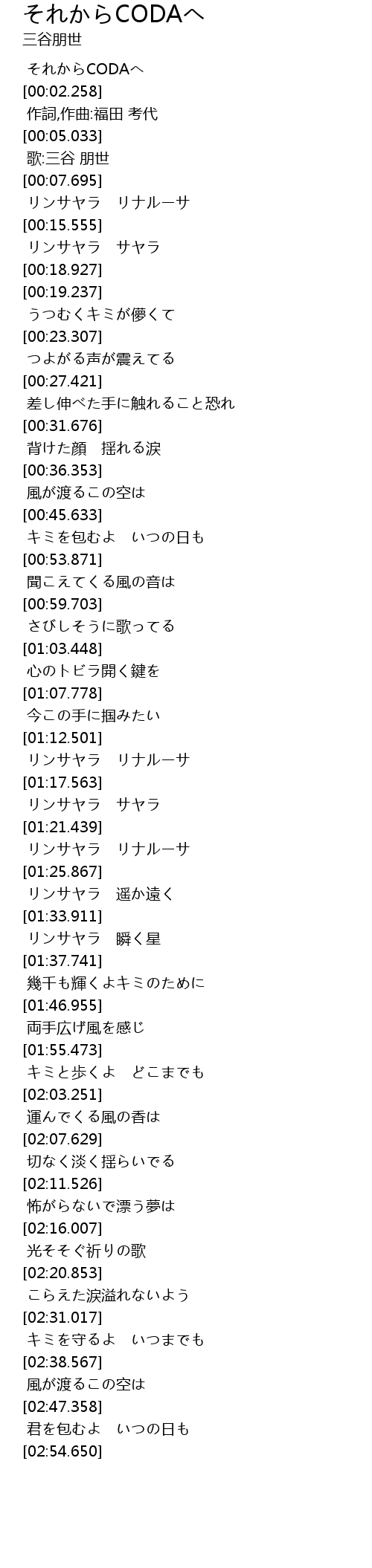 | [00:00.000] | それからCODAへ |