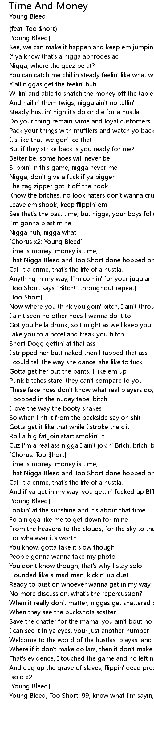 Young Bleed, Too Short, 99, know what I'm sayin, one time nigga |