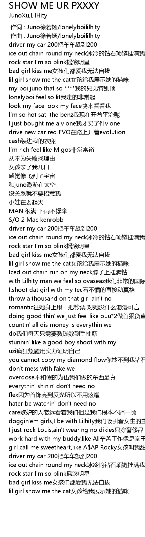 | [02:06.109] | stunnin' like a good boy shoot with my uzi feng kuang xuan yao yong shi li zheng ming zi ji |