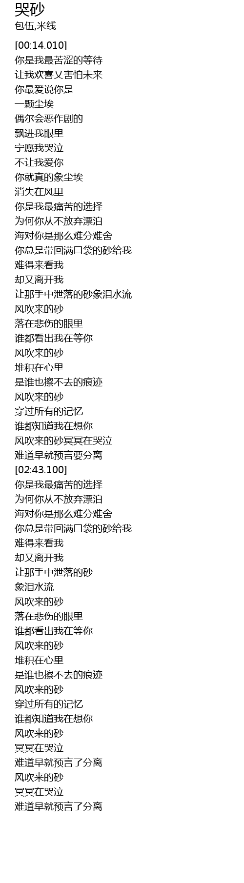 | [01:42.400] | 风吹来的砂 |