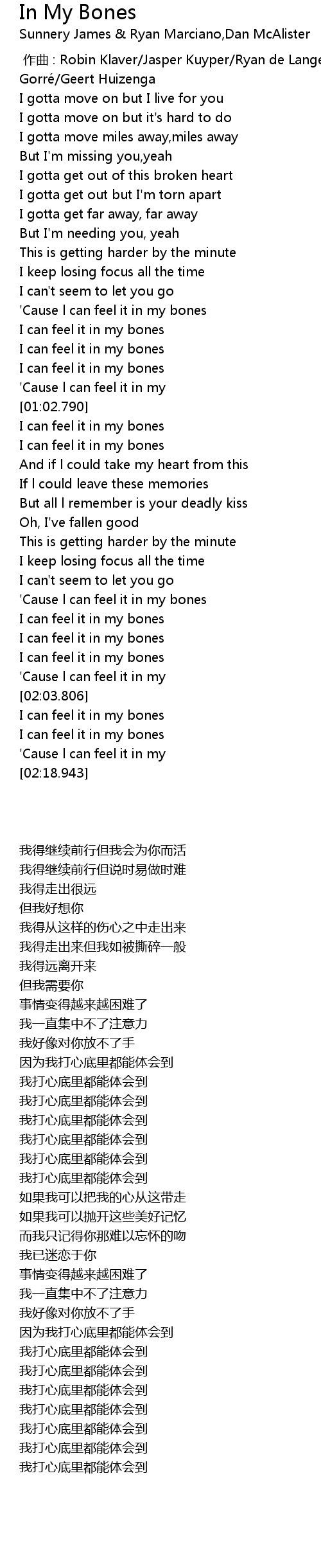 | [00:45.612] | ' Cause l can feel it in my bones |