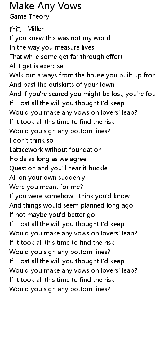 | Song | Make Any Vows |