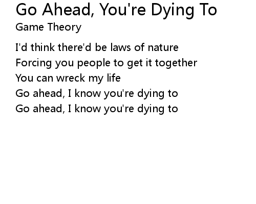 | Song | Go Ahead, You're Dying To |