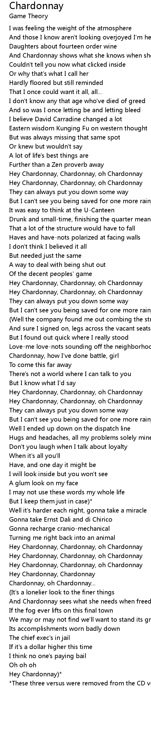 Hey Chardonnay, Chardonnay, oh Chardonnay |