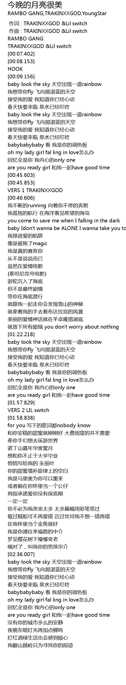 | [00:00.000] | 作词 : TRAKINXXGOD &Lil switch |