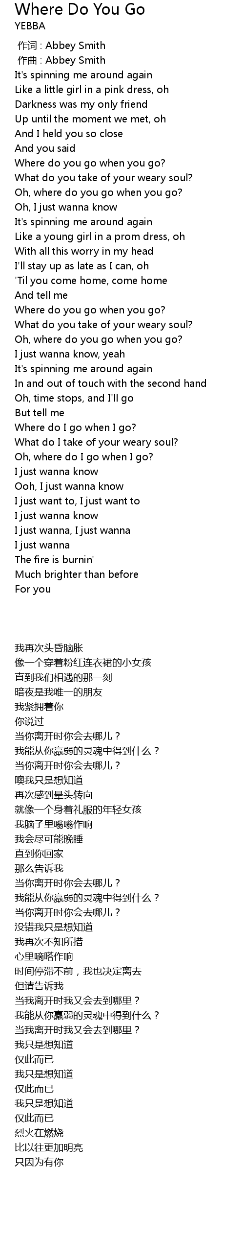 | [00:00.000] | zuo ci : Abbey Smith |