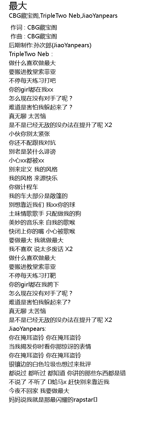 | [00:13.421] | 做什么喜欢做最大 |