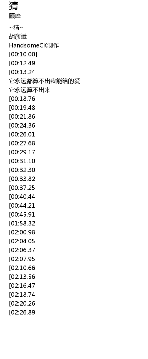 | [00:15.56] | 它永远都算不出我能给的爱 |