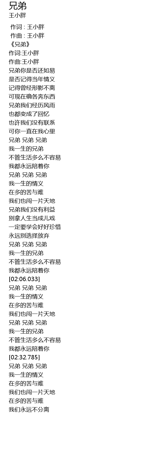 | [02:06.033] | 兄弟 兄弟 兄弟 |