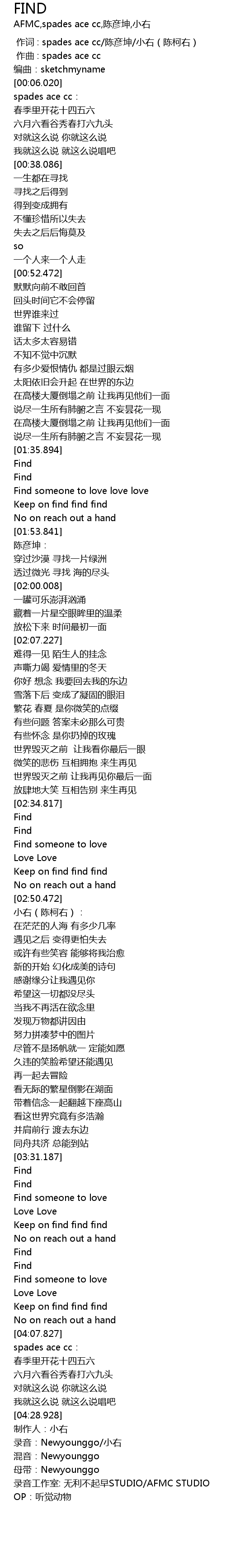 | [00:00.000] | 作词 : spades ace cc/陈彦坤/小右(陈柯右) |