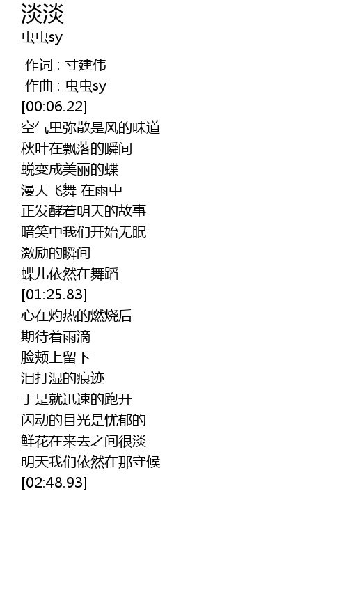 | [01:17.91] | 蝶儿依然在舞蹈 |