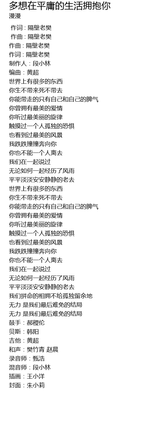 | [00:04.436] | 作词 : 隔壁老樊 |