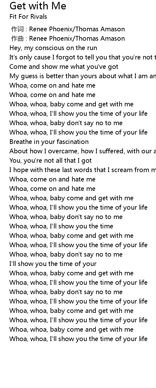 | [02:02.18] | Whoa, whoa, baby come and get with me |