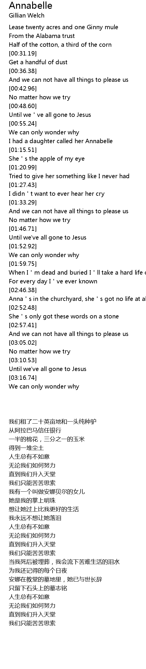 | [02:47.94] | Anna's in the churchyard, she's got no life at all |