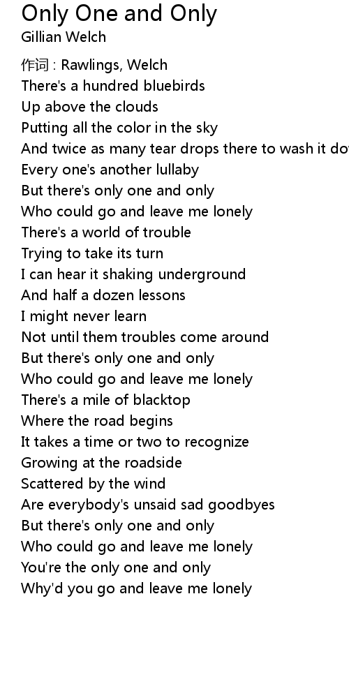 | You' re the only one and only | |