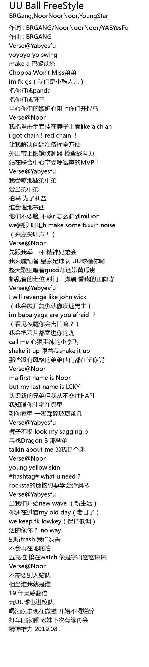 | 作词 : BRGANG/NoorNoorNoor/YABYesFu | |