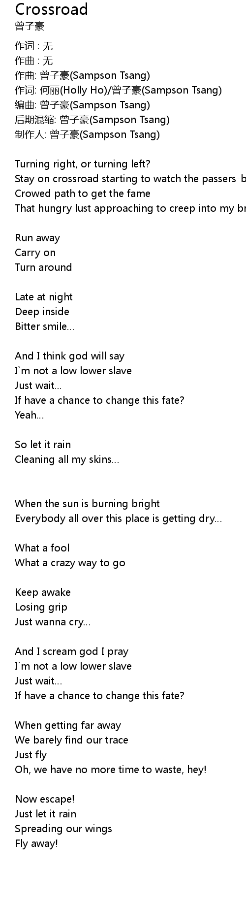 | 作词: 何丽(Holly Ho)/曾子豪(Sampson Tsang) | |