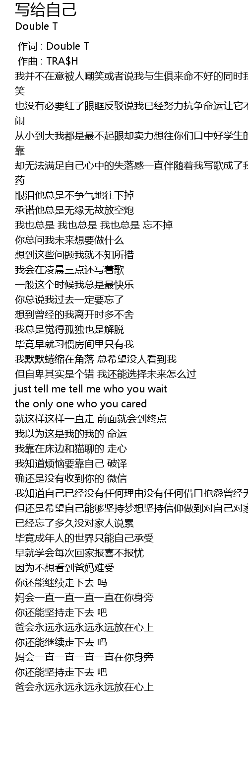 | [00:00.000] | 作词 : Double T |