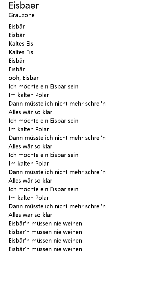 | [00:59.782] | Ich möchte ein Eisbär sein |