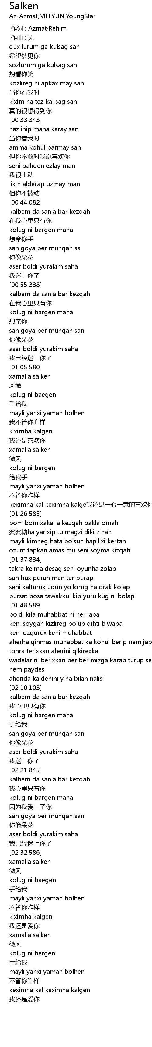 | [00:00.000] | 作词 : Azmat·Rehim |