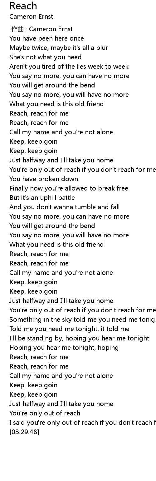 | [03:21.71] | I said you' re only out of reach if you don' t reach for me |