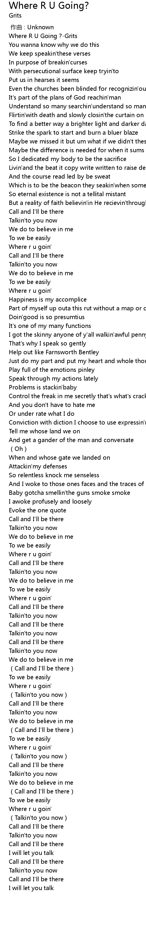 | [00:00.00] | Where R U Going ? Grits |
