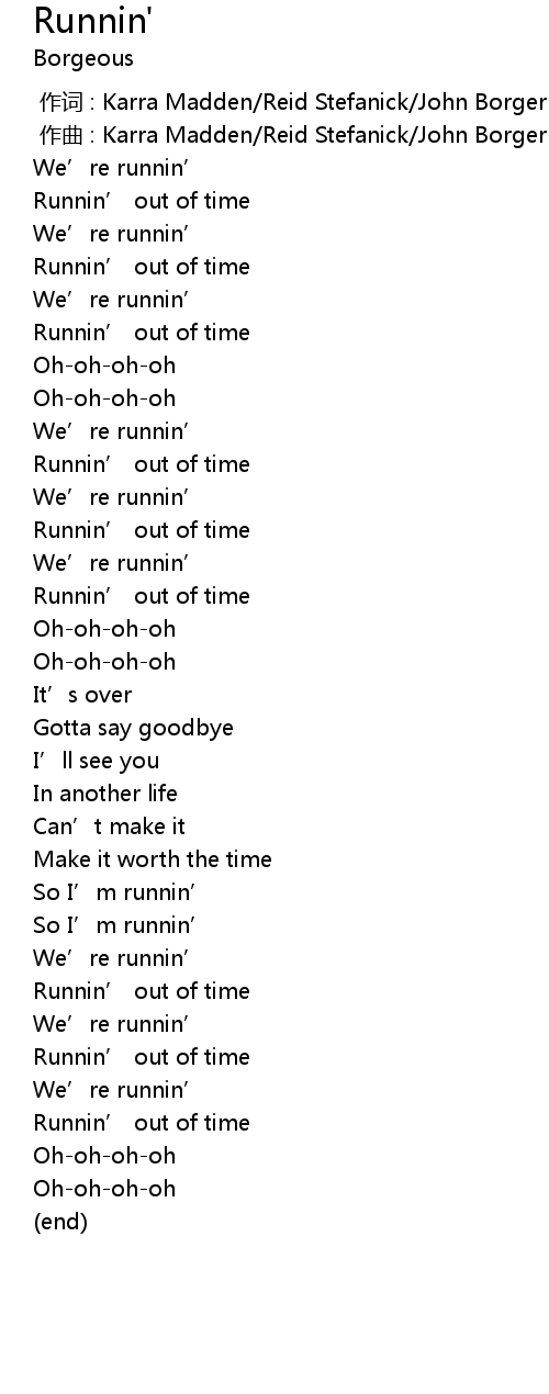 | [00:46.55] | Runnin' out of time |