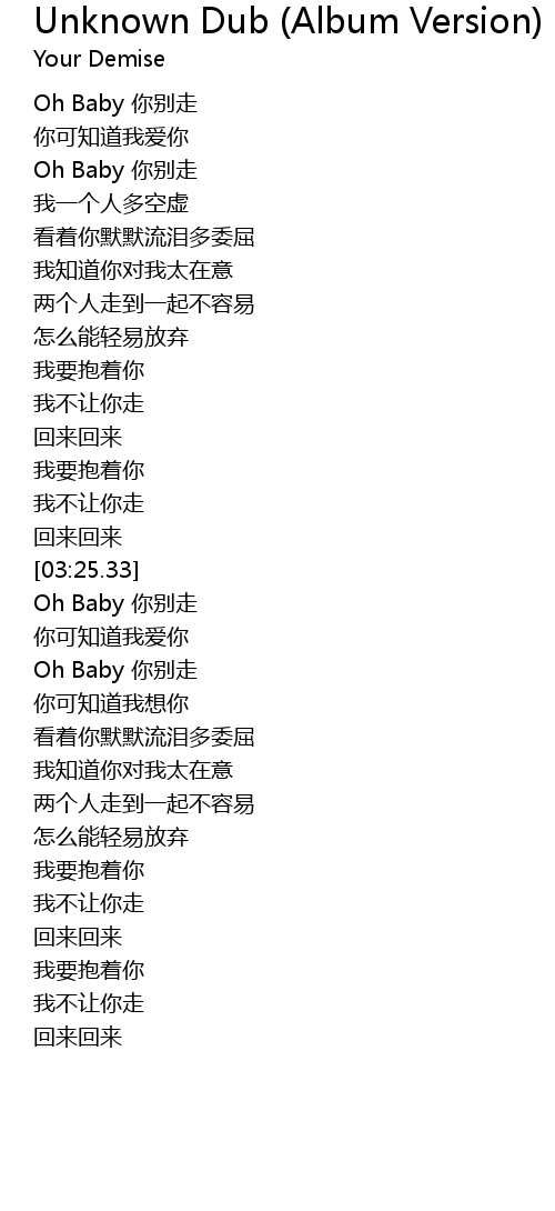| [04:30.17] | Oh Baby nǐ bié zǒu |