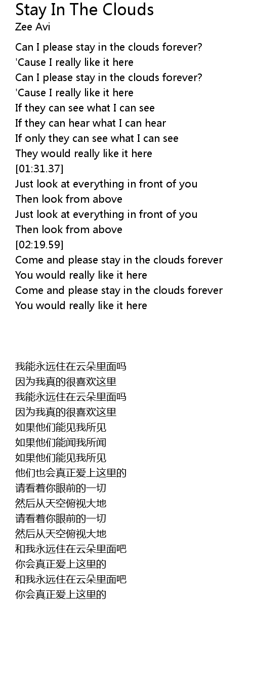 | [00:37.56] | Can I please stay in the clouds forever? |